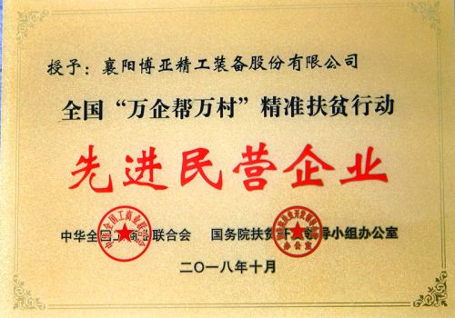 近年來,博亞公司始終積極倡導(dǎo)“企業(yè)發(fā)展不忘回饋社會(huì)”理念,大力弘揚(yáng)光彩精神,積極履行社會(huì)責(zé)任,主動(dòng)參與精準(zhǔn)扶貧、鄉(xiāng)村振興、光彩事業(yè)和公益慈善事業(yè),累計(jì)捐贈(zèng)資金1000多萬元。2018年被評為全國“萬企幫萬村”先進(jìn)民營企業(yè)。2020年被全國工商聯(lián)表彰為抗擊新冠肺炎疫情先進(jìn)民營企業(yè)。2021年4月,公司黨委書記、董事長李文喜被表彰為“全省脫貧攻堅(jiān)先進(jìn)個(gè)人”,5月,被表彰為湖北省光彩事業(yè)助力鄉(xiāng)村振興、社會(huì)公益“光彩之星”,公司被表彰為助力鄉(xiāng)村振興“萬企興萬村”行動(dòng)標(biāo)兵。同時(shí),為把博亞人和、擔(dān)當(dāng)精神傳承下去,在2020年修訂公司章程時(shí),寫入了黨建和履行社會(huì)責(zé)任的具體要求,用實(shí)際行動(dòng)詮釋了博亞公司的家國情懷和責(zé)任擔(dān)當(dāng)。